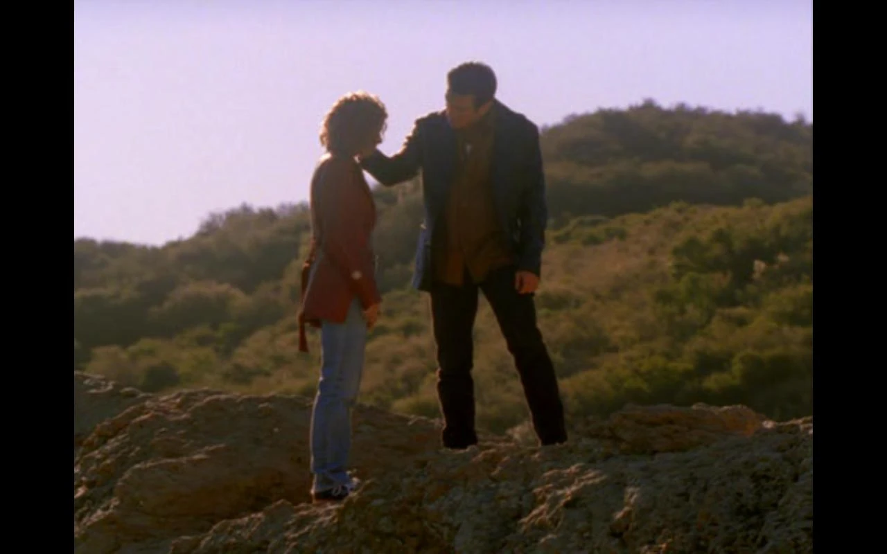 In front of the building she runs in to Vince who traced her when she paid with her credit card for the room, Jarod gets out and fights with Vince, after the fight Zoe drives away alone. Jarod finds her in top of the cliff, preventing her from jumping off. he convinces her to live on, and not to throw her life away, because she blames herself of her twin sister's death, who fell off the same cliff. She comes down and stays with her grandmom, Jarod has to leave as always and does so with tears glimmering in his eyes.